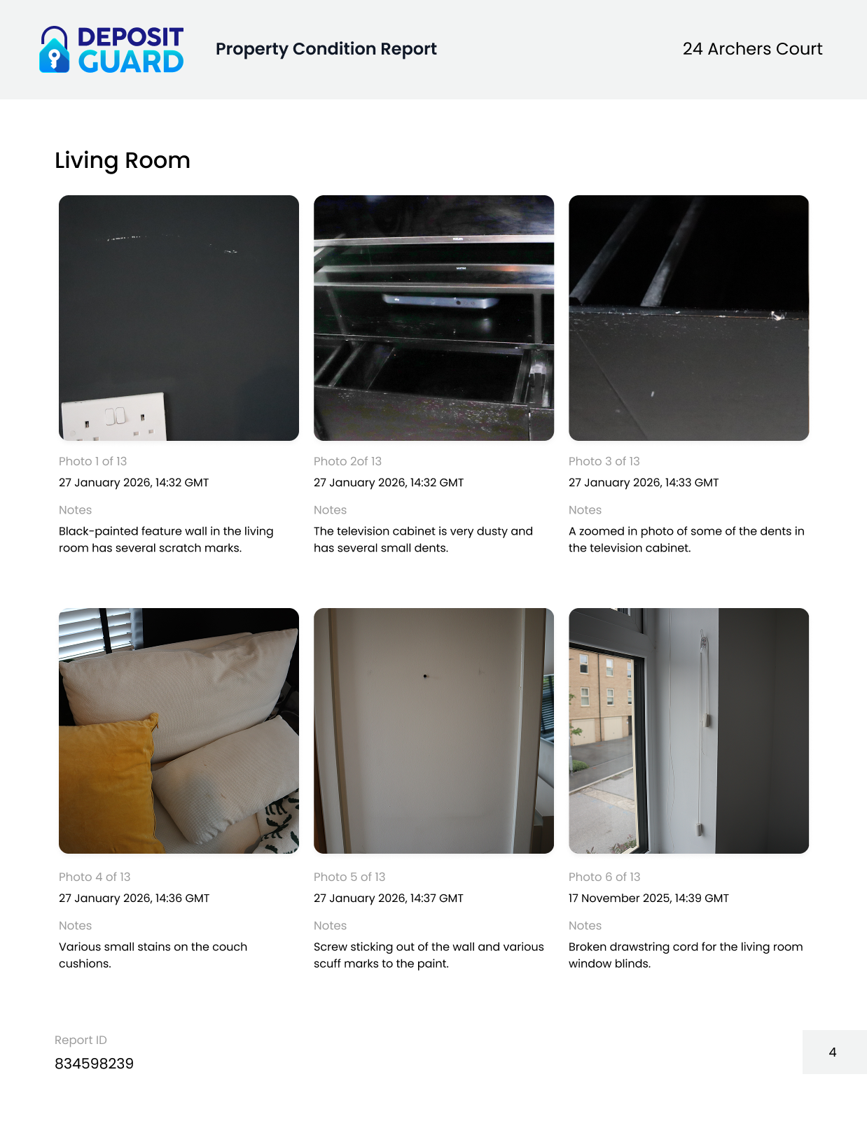 Once you’re done, Deposit Guard generates a professional, read-only PDF report that organises everything by room and locks the evidence in place. That report is yours to keep, share, or submit if a deposit dispute ever arises.